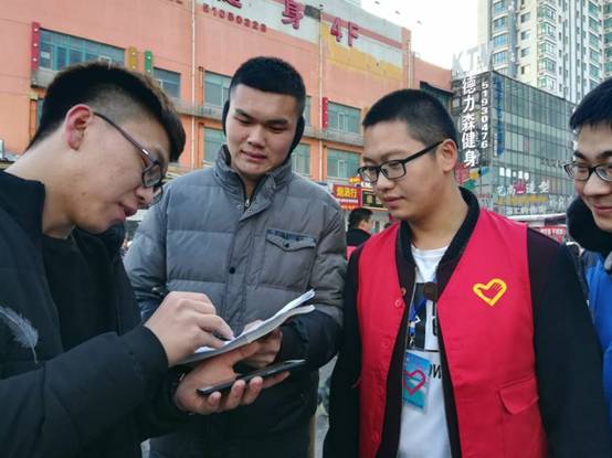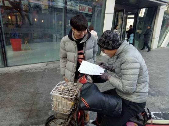 前往服装城的小组成员请外卖小哥签名倡议书