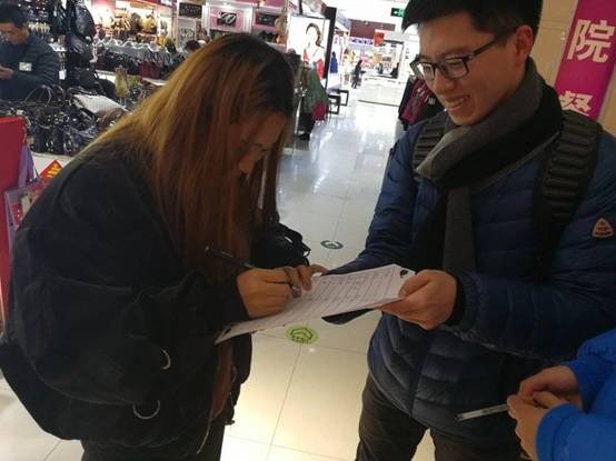 前往凯德广场的小组成员请路人签名倡议书