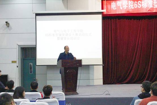 为进一步深化养成教育,培养学生良好行为习惯;把《哈尔滨理工大学学生安全稳定信息闭环报送管理办法》落到实处,切实维护校园安全稳定,电气学院于2018年3月23日18:00在一号楼0220报告厅举办6S标准型寝室建设大赛启动仪式暨寝室长培训会。电气学院党委书记张军、党委副书记李丽、西区一公寓楼长韩志梅、院学生会指导教师张宏亮、院团总支书记周广及全院514名寝室长参加了本次活动。