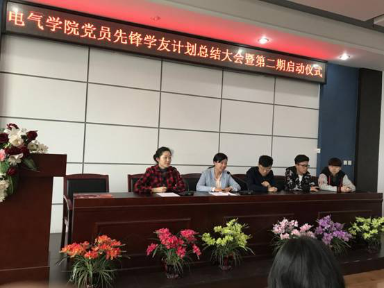 为贯彻落实学校《关于对学业困难学生群体开展帮扶工作的通知》文件要求,实现对学业困难学生的帮扶和再教育,为充分发挥学生党员的先进性和代表性,充分发挥学生党员的先锋模范作用,为给学生党员的教育和管理提出新的方向,为学风建设打开新局面,电气学院于2018年4月10日中午12点40在新主楼G1012举办“党员先锋学友计划”总结大会暨第二期启动仪式。电气学院党委副书记李丽、党务辅导员臧欣昱以及2015级、2016级、研究生2017级全体党员参加此次会议。