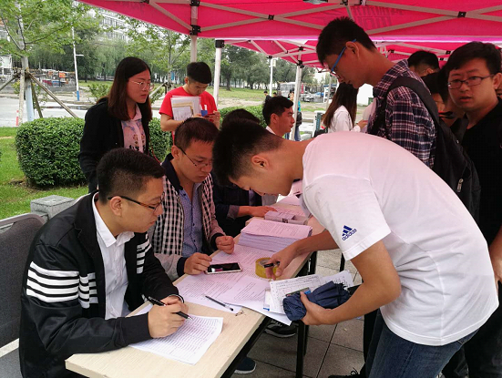 2018年8月30日,在新主楼前,哈尔滨理工大学电气与电子工程学院迎来了一年一度的研究生迎新工作,从早上八点开始,就有新生陆续前来报道,电气学院研究生会的工作人员热情细心的接待前来报到的新生,工作人员分为四组,查表、分发学生卡、填写承诺书、签字确认,分工明确、效率十足。即使偶有小雨的寒意也掩不住报到现场热情的气氛。以下是报到现场照片: