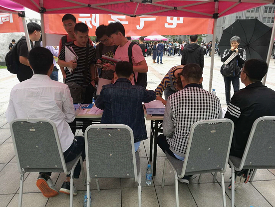 邱致勇导员与电气学院学生会成员提前到达报到现场准备迎新生活动
