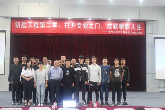 以引领电气新生代感受专业魅力、感悟专业精神、坚定专业信仰、铭记专业使命、立志忠于祖国、忠于人民、忠于专业为宗旨的“钥匙工程”第二季迎来了第四位主讲嘉宾。2018年9月5日8:30,电气学院李忠华教授在一号楼0220报告厅,以“专业、职业、事业”为主题,为电气学院全体18级新生做讲座,讲座由电气学院党委副书记兼副院长李丽主持。