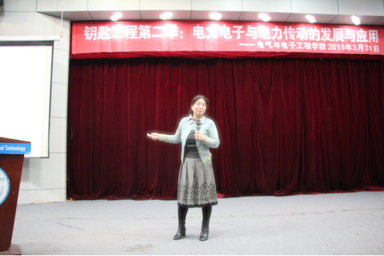 以引领电气新生代感受专业魅力、感悟专业精神、坚定专业信仰、铭记专业使命、立志忠于祖国、忠于人民、忠于专业为宗旨的“钥匙工程”第二季迎来了第十六场讲座。2019年3月31日18:00,电气学院省级领军人才梯队后备带头人、硕士生导师周美兰教授在一号楼0220报告厅,以“电力电子与电力传动的发展与应用”为主题,为电气学院全体18级学生做专题讲座。