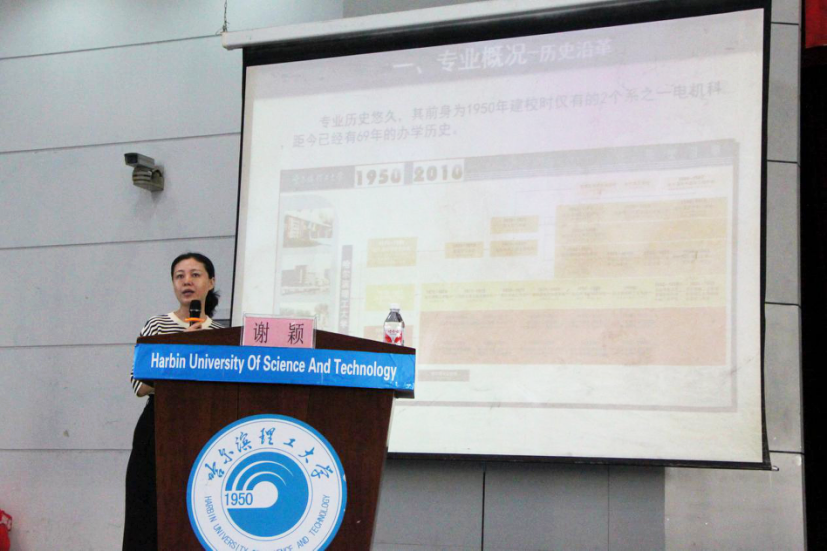 首先与同学们见面的是电机电器及其控制系的谢颖教授,其主要研究方向为电磁及振动噪声计算、感应电机故障诊断及检测、新能源汽车用电机研究。她对同学们能来到哈尔滨理工大学表示欢迎,并希望同学生们度过一个充实的专业介绍旅程。谢颖教授从学校的校史为基点,沿着历史发展的脉络讲述了电机专业的产生及发展过程,让学生知道了专业的“来处”;接着谢颖教授又对当下电机行业发展所涉及方面最前沿技术进行了介绍,让同学们知道了行业的未来发展的“去处”。
