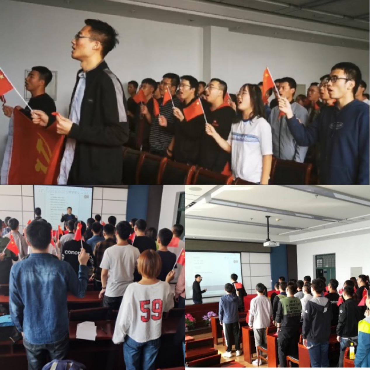 3.“十一”期间,2016级学生第一党支部全体党员在党支部书记张宏亮老师的带领下,在G区10楼会议室1012举办唱国歌活动。学生党员们挥舞着小国旗,伴着音乐节奏,歌唱《我的祖国》。在中国五千年的文明史上,无数先辈为了祖国的强大、民族的兴旺、梦想的实现,努力奋斗、坚持不懈、继往开来,作出了可歌可泣的贡献。通过这一形式使学生党员增强了对于祖国七十年来无数革命先辈的努力充分的理解。通过这一阶段以“辉煌七十年,奋进新时代”为主题的集中学习,使党支部全体学生党员对于习近平新时代中国特色社会主义思想有了新的理解和感悟,对于自己的责任和义务有了更加清晰的认识。