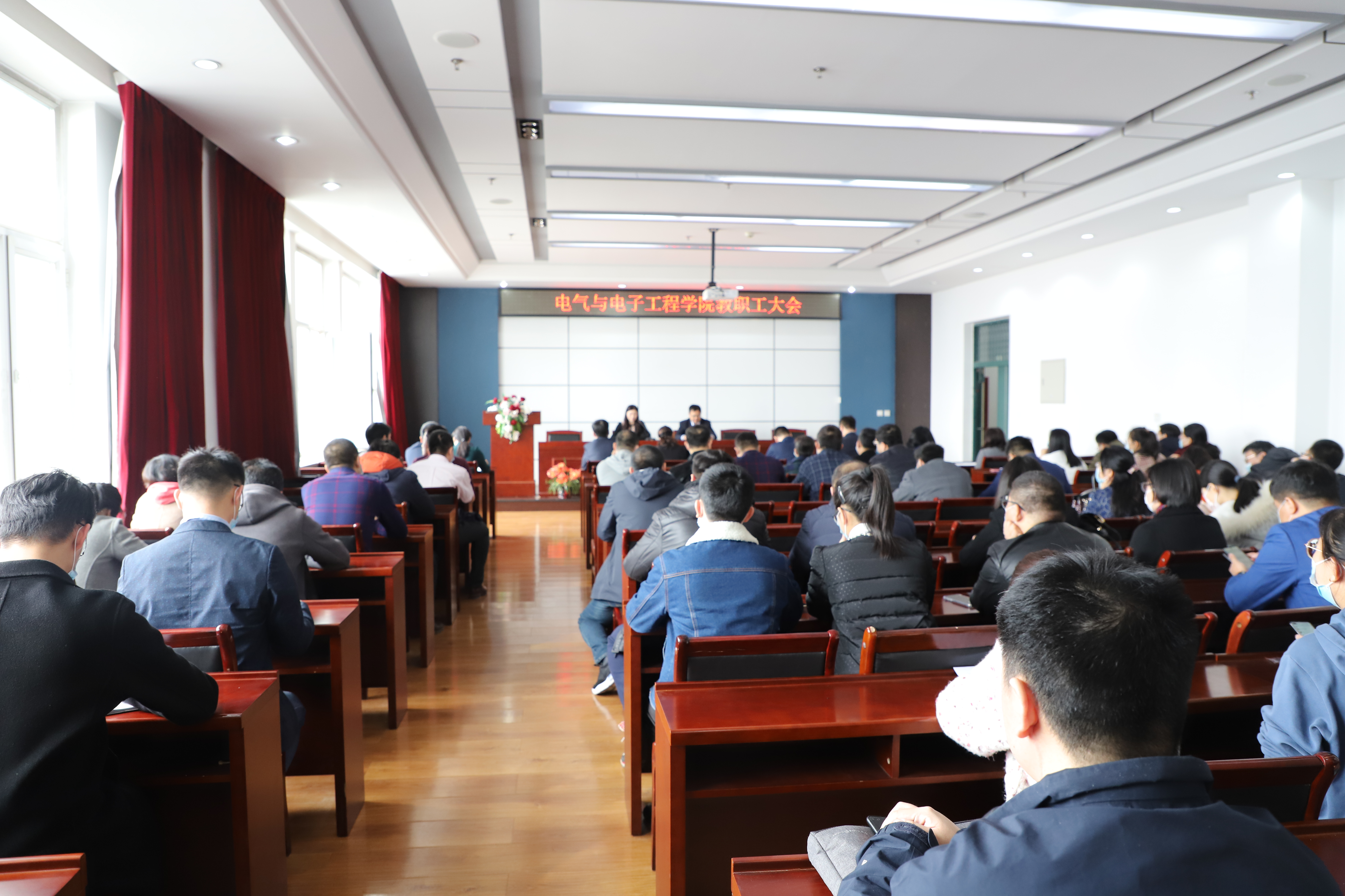 万物复苏春风醉,建党百年新作为。2021年是“十四五”规划开局之年,为进一步明确学院建设和工作的重点,凝心聚力,统一思想。3月25日上午9时,电气与电子工程学院全体教职员工大会在G1012会议室召开。院长刘骥、书记单鹂娜、副院长陶大军、副院长吕艳玲、副书记张颖、副院长陈明华、院长助理池明赫、正处级组织员陈洪彬,以及全体教职员工出席大会。大会由党委书记单鹂娜主持。