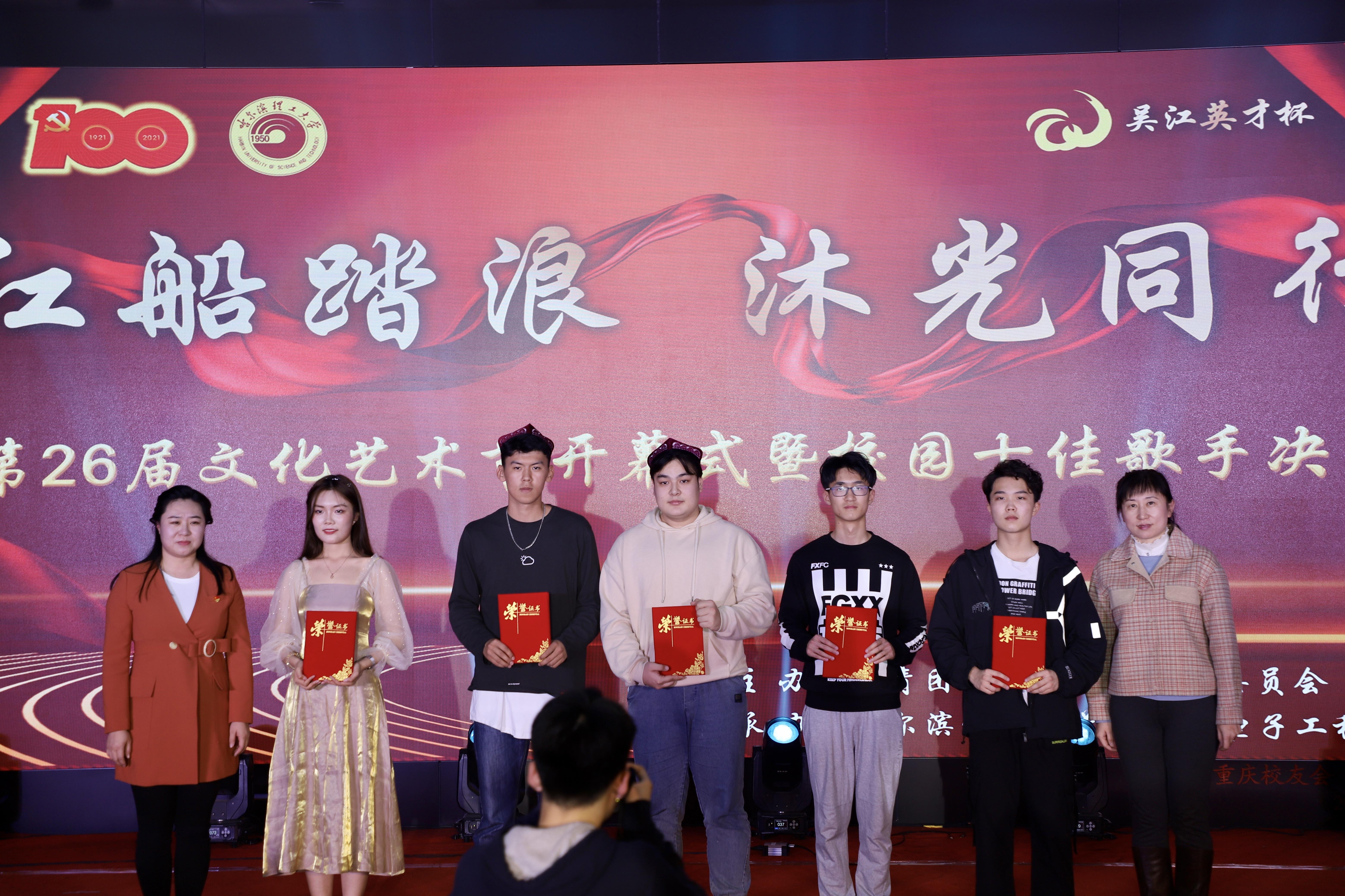 经过评委会老师的认真评选,最终材料科学与化学工程学院的陈冯贤淏同学获得一等奖,经济与管理学院储梦承同学、建筑工程学院陈煜焓同学、电气与电子工程学院卢豫同学获得二等奖,艺术学院谷雨硕同学、计算机科学与技术学院党广浩同学、电气与电子工程学院胡嘉辉同学、马克思主义学院姜玥琳同学、外国语学院王科阳同学、理学院姜俊尚同学获得三等奖,测控技术与通讯工程学院马英志同学、自动化学院陈焕同学、机械动力工程学院艾热夏提\乃比江同学、计算机科学与技术学院赵瑞同学获得优秀奖。陈冯贤淏、储梦承、陈煜焓、卢豫、谷雨硕、党广浩、胡嘉辉、姜玥琳、王科阳、姜俊尚同学获得“校园十佳歌手”称号。
