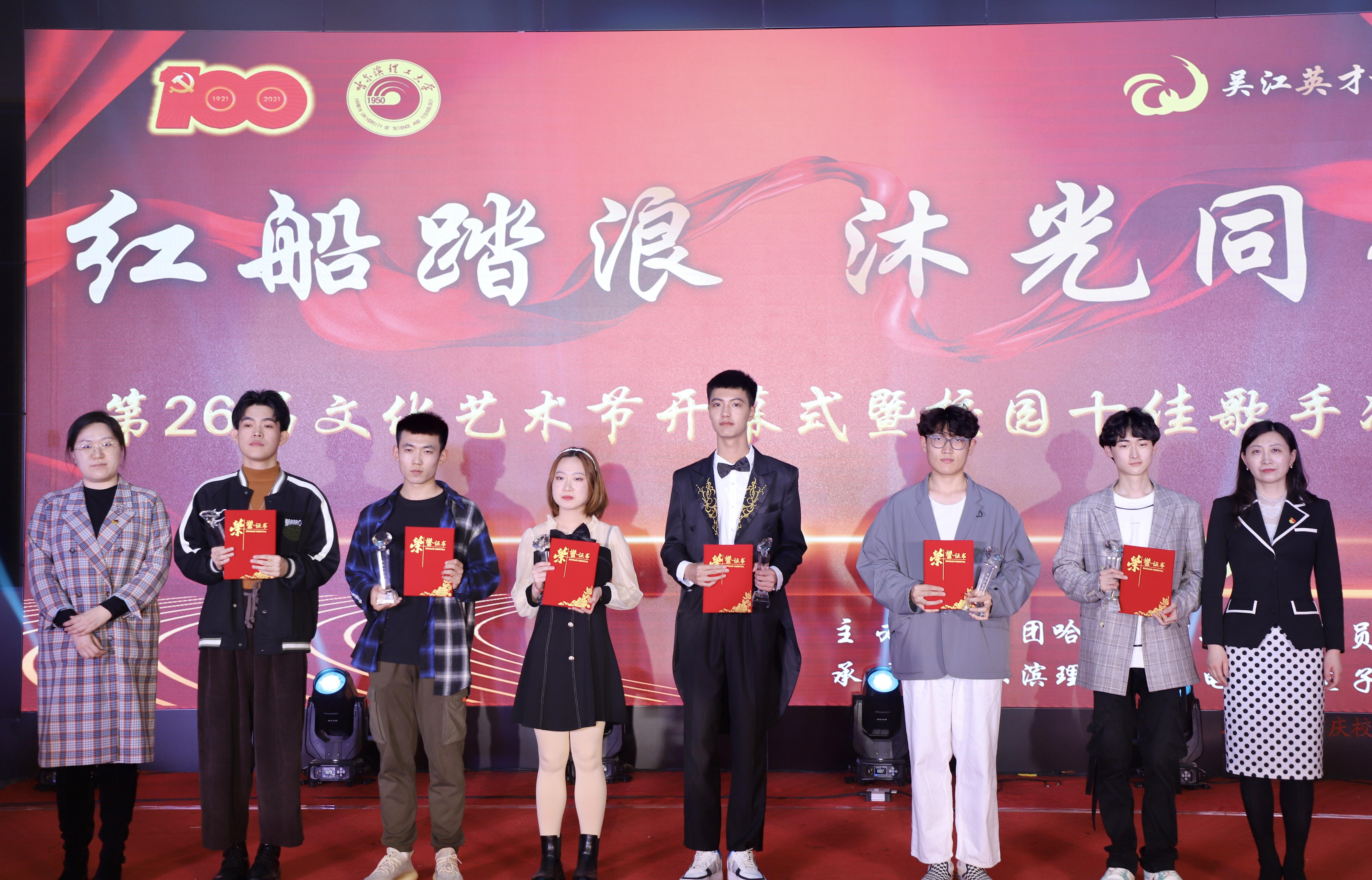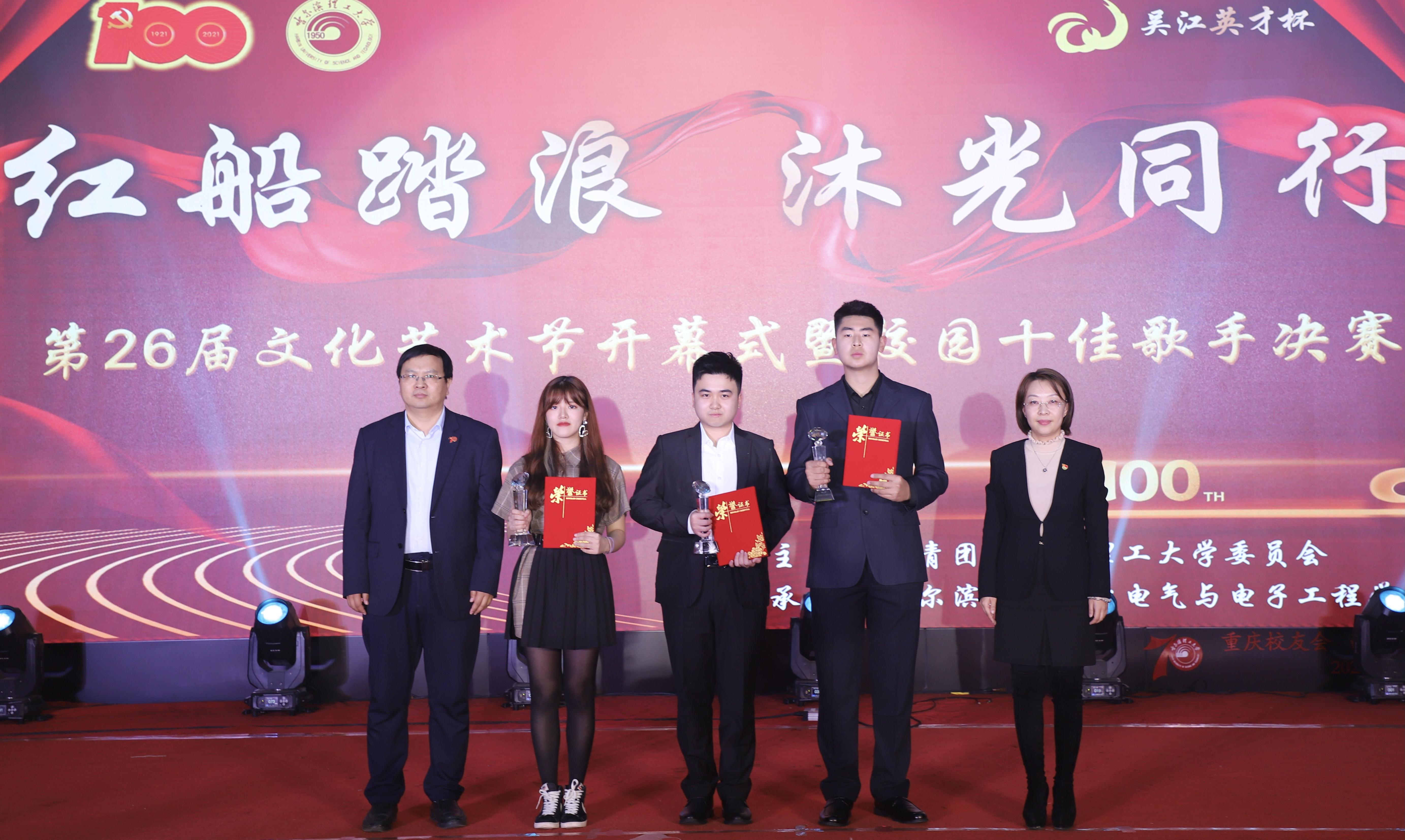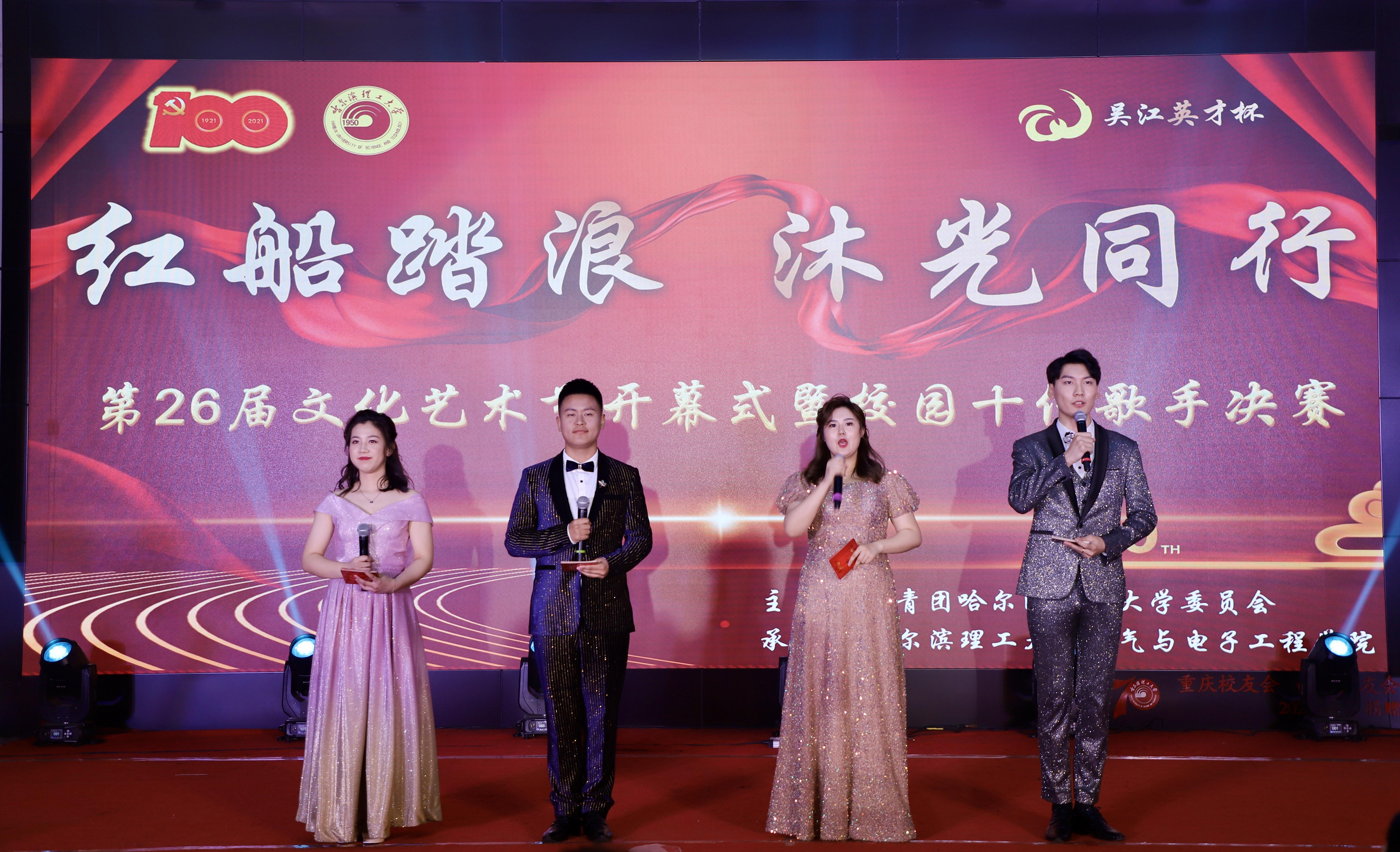 423日晚18:00时,哈尔滨理工大学第26届大学生文化艺术节开幕式暨“吴江英才杯”校园十佳歌手大赛决赛在西区1号楼0220报告厅隆重举行。学校党委副书记陆岩、党委学生工作部部长刘迪、校团委副书记曹石、党委学生工作部副部长任佳伟、电气学院院长刘骥、电气学院党委书记单鹂娜、电气学院正处级组织员陈洪彬、电气学院党委副书记兼副院长张颖及各学院主管学生工作的书记(副书记)出席了本次开幕式,各学院团委书记、学生会指导教师及600余名学生于线上线下共同参加了此次活动,学校党委副书记陆岩宣布第26届大学生文化艺术节开幕,此次活动得到吴江经济技术开发区大力支持。大赛由宣传部副部长于海洋担任评委会主席,由艺术学院教师韩丽娜,学校团委教师张奇,扬帆合唱团指导教师、电气学院学工办主任张宏亮,学校艺术团指导教师、外国语学院学工办主任王梓懿担任评委。