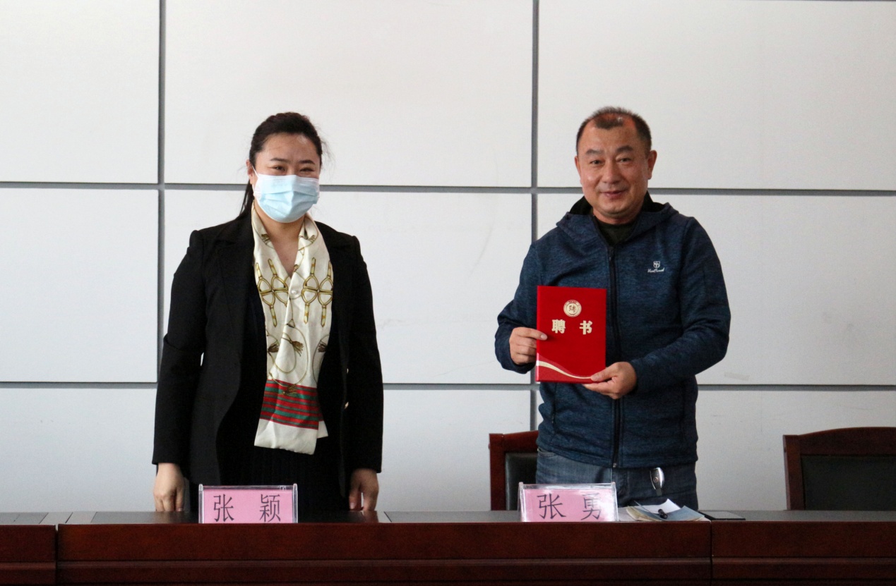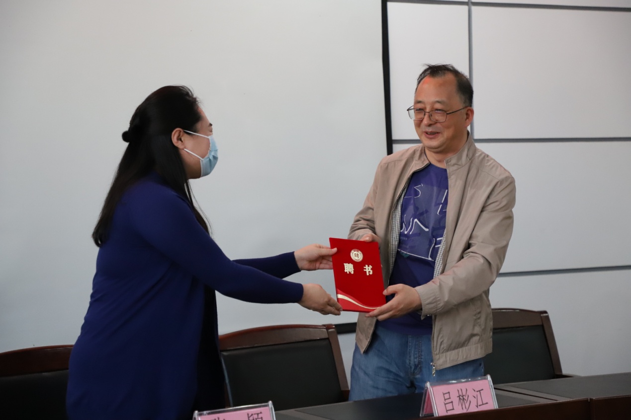 院党委副书记兼副院长张颖为吕彬江老师颁发聘书
