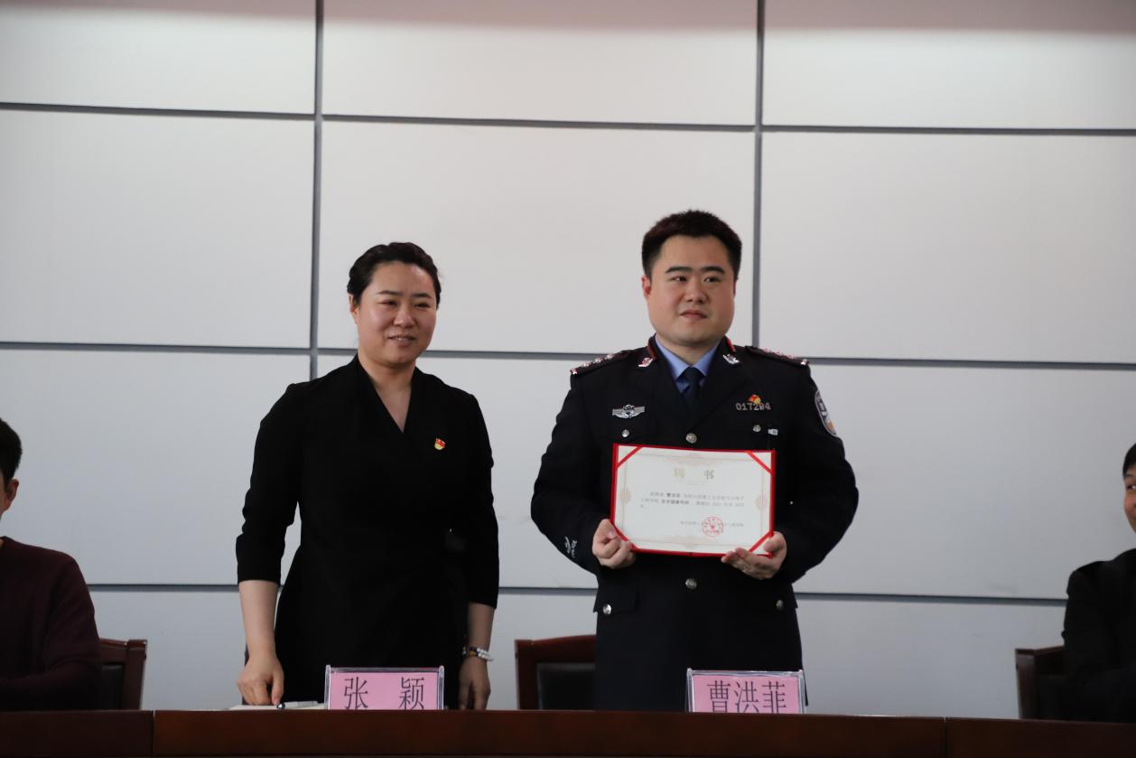 院党委副书记兼副院长张颖为曹洪菲警官颁发聘书