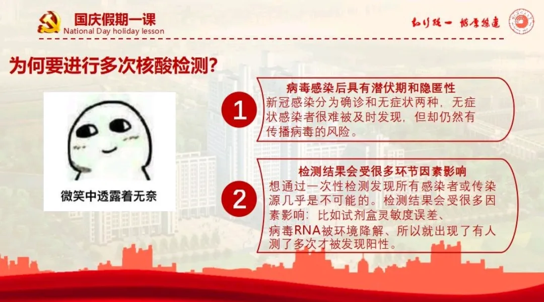 病毒无情,人间有情。在当今全球全力阻击疫情之时,我国已取得不俗的成绩,使得人民备受鼓舞。然而病毒却没有妥协,变异出更加可怕的病毒—德尔塔毒株。相比于最初的新冠病毒,此病毒传播更广,传染性更强,隐匿性极强,使我们遭遇了更严峻的考验。核酸检测也因此成了必不可缺的环节,德尔塔毒株具有很强的“反侦察能力”,通过一次检测无法完全确认他的存在。只有多次进行检测,才能对其绳之以法。日常的防护措施要牢记心中,相信全民抗疫的我们,一定能收到一份满意的答卷。疫情终将过去,静候春暖花开。