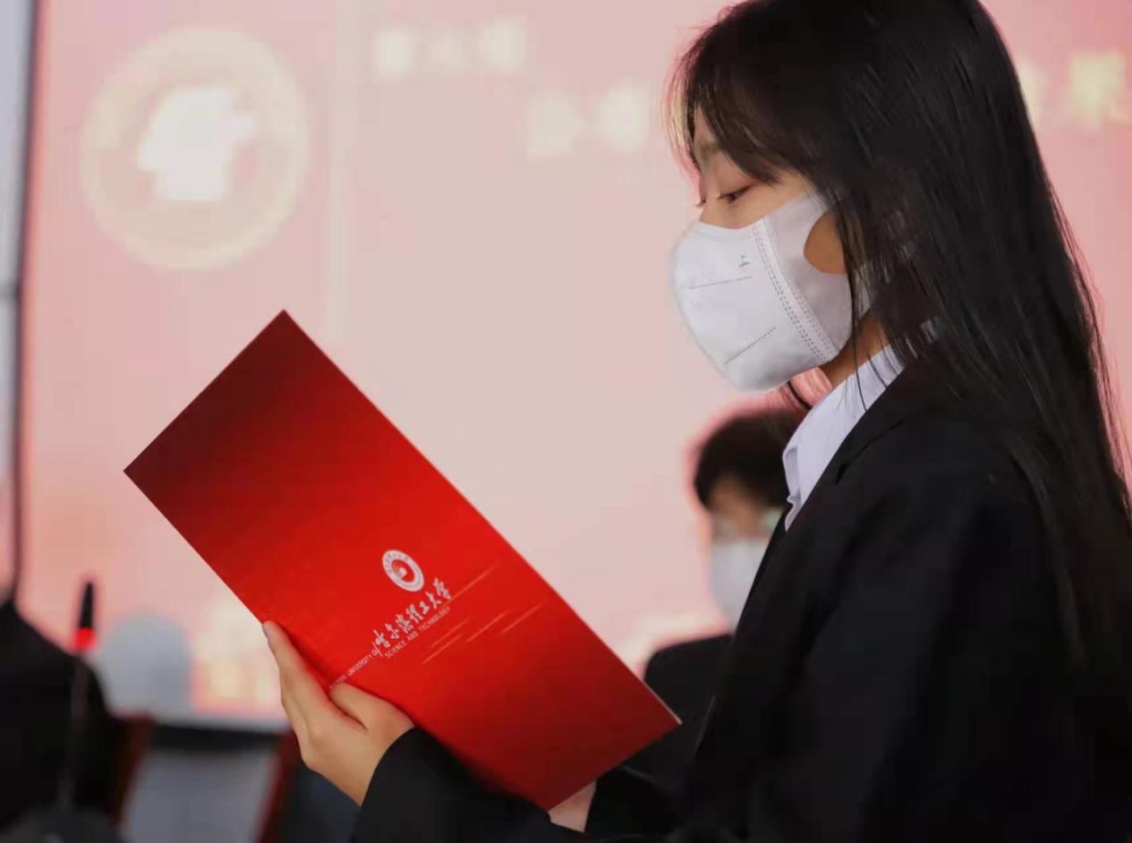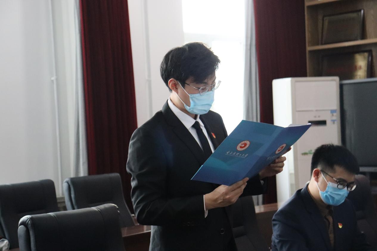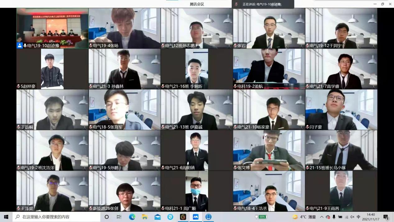 滕明轩同学宣读《哈尔滨理工大学电气与电子工程学院研究生会章程(草案)》