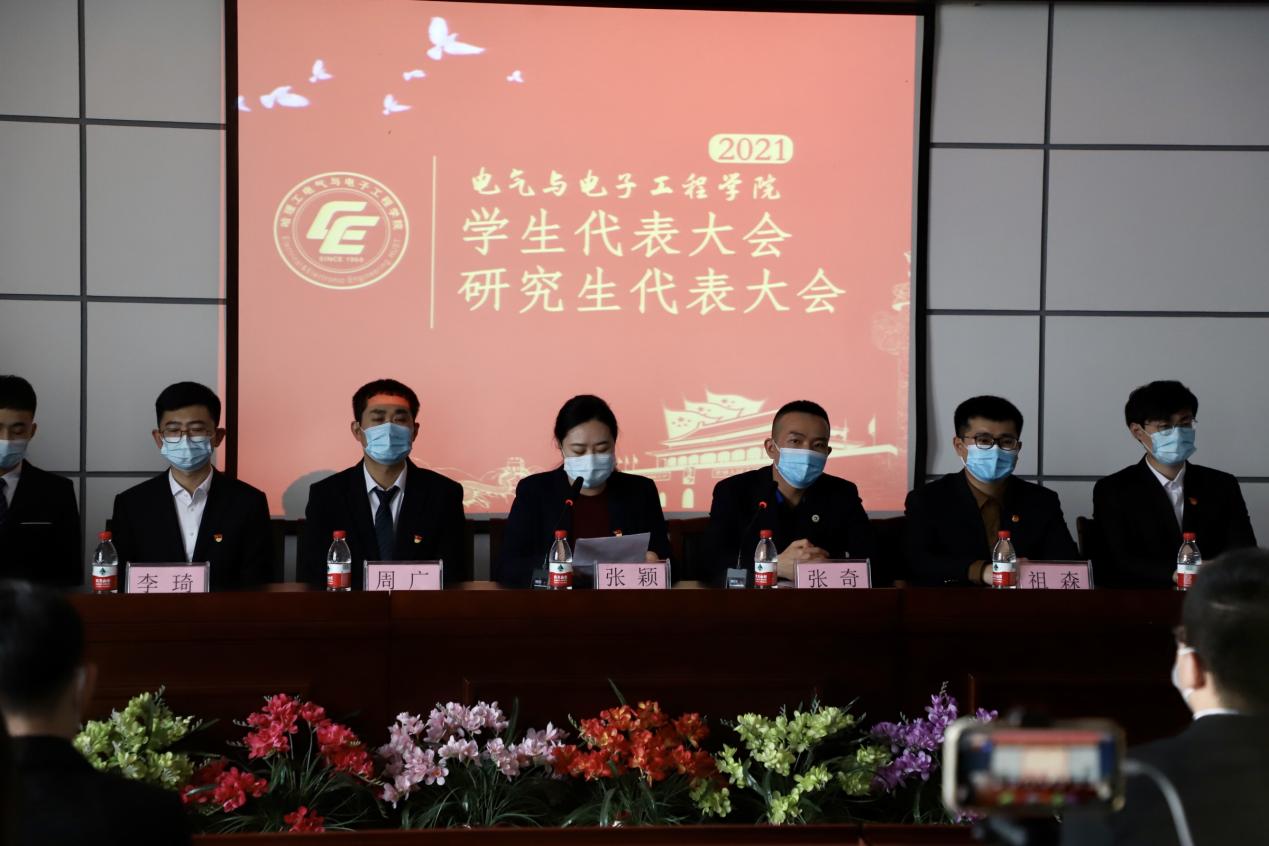 2021年11月17日下午14时,电气与电子工程学院第一次学生代表大会暨第一次研究生代表大会在新主楼G1012会议室顺利开幕。按照疫情常态化防控要求,本次大会严格掌控现场参会人数,并采取了线上同步实时直播的方式召开会议。学院党委副书记兼副院长张颖、校研究生会秘书长校团委组织建设部部长张奇、院团委书记周广、院学生会秘书长李琦、院研究生会秘书长祖森、校研究生会主席团成员胡宇飞等列席会议。42名学生代表大会和研究生代表大会正式代表出席现场会议,其余101名正式代表线上同步参加会议。会议由院团委副书记彭绅主持。