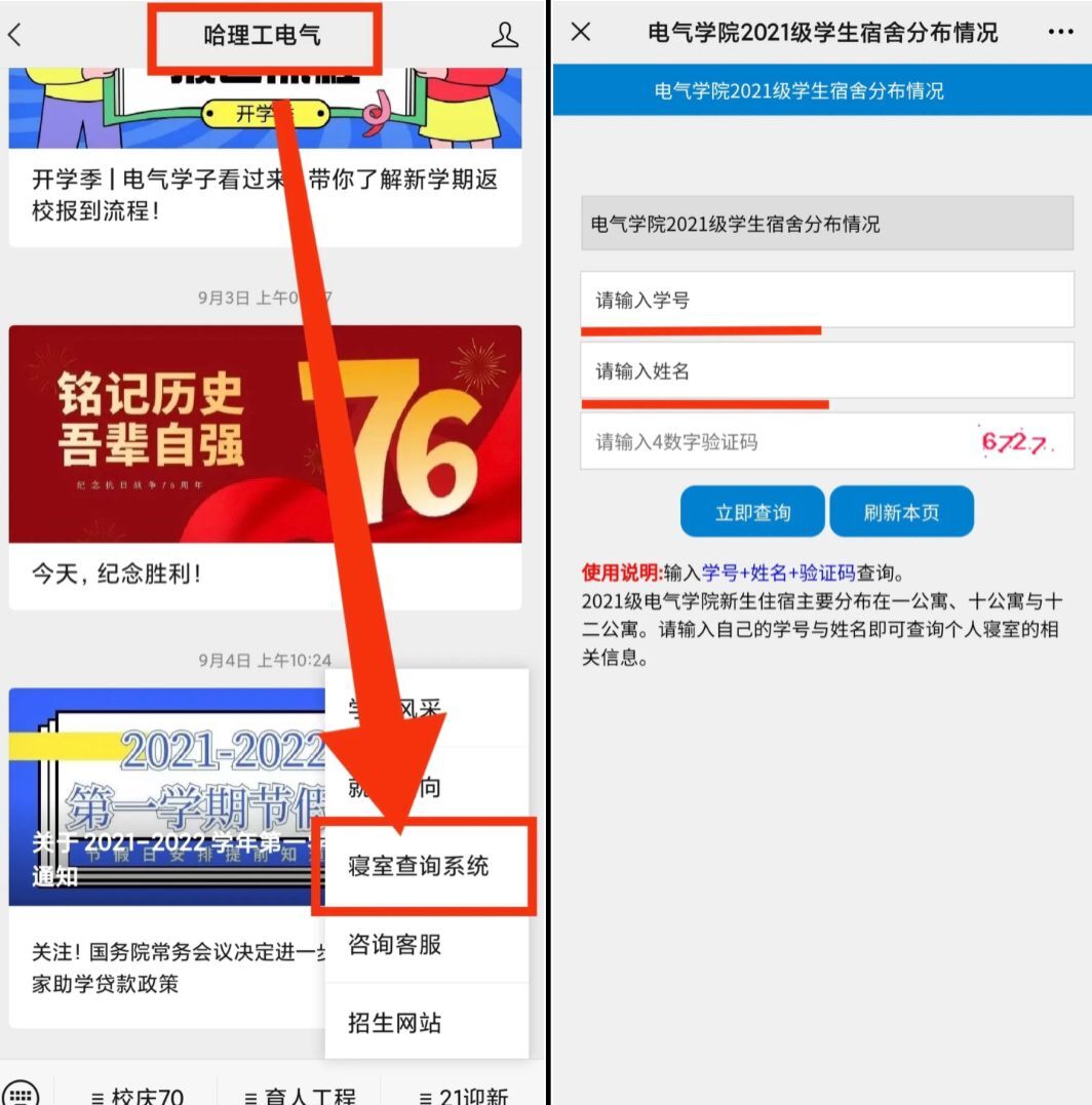 为方便2021级新生有效报到,简化查询过程,提高公寓服务工作质量,学院在公众平台创设新生学生寝室查询系统,方便学生自助查询个人所在寝室,积极营造了新生第一次“归属感”,为做好全方位服务奠定了基础。