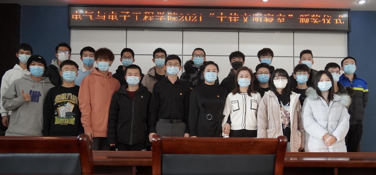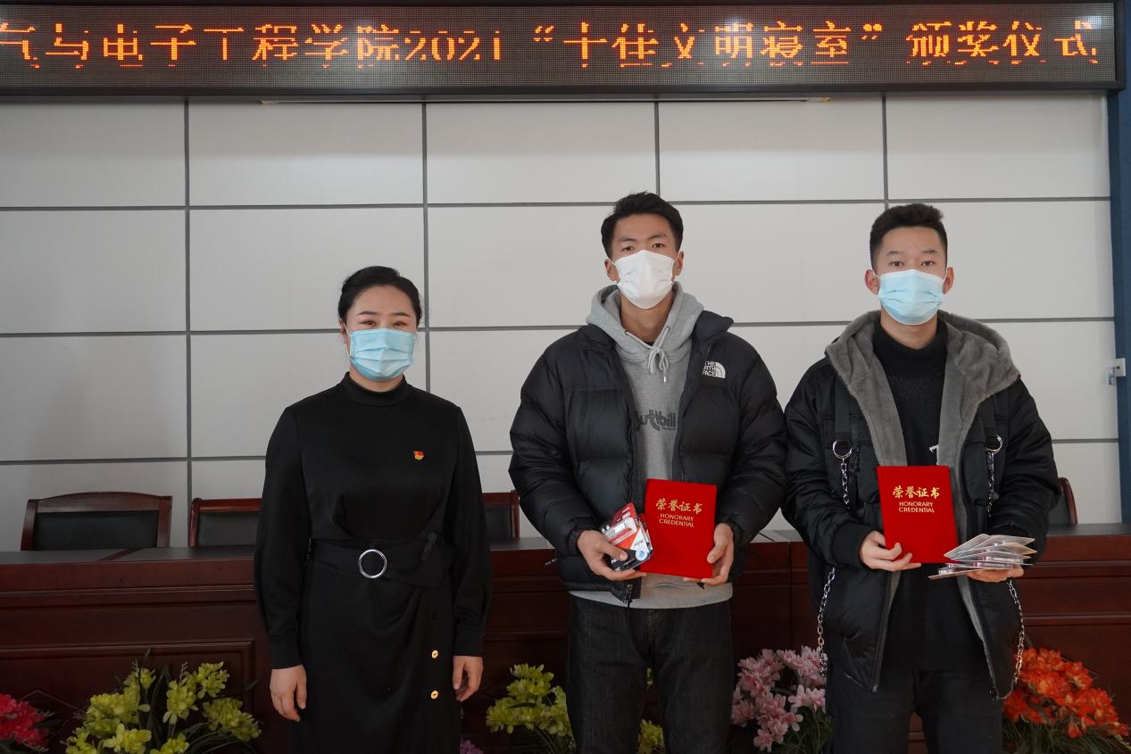 为切实检验学生寝室管理成效,学院面对电气学院全体学生开展2021年“十佳文明寝室”评选活动。通过学生自愿参加,问卷调查的方式进行,主要通过寝室的卫生、整洁度以及各寝室的文化创意与创新等方面展现文明寝室创建情况。初选以问卷调查为主,结合寝室文化内容和寝室问卷照片进行筛选。复选由学生会指导教师、自管委员会成员结合寝室实际情况,量化打分进行评比。比赛共设一等奖2名,二等奖3名,三等奖5名,并于12月21日举行学院2021“十佳文明寝室”颁奖典礼,学院党委副书记兼副院长张颖、公寓管理中心西区管理科科长王丽美和学院团委副书记、学生会指导教师李琦出席颁奖典礼,公寓管理中心为“十佳文明寝室”提供了实用丰厚的奖品。