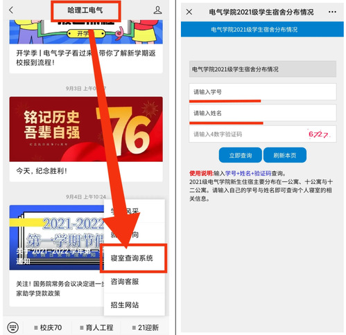 为方便2021级新生有效报到,简化查询过程,提高公寓服务工作质量,学院在公众平台创设新生学生寝室查询系统,方便学生自助查询个人所在寝室,积极营造了新生第一次“归属感”,为做好全方位服务奠定了基础。