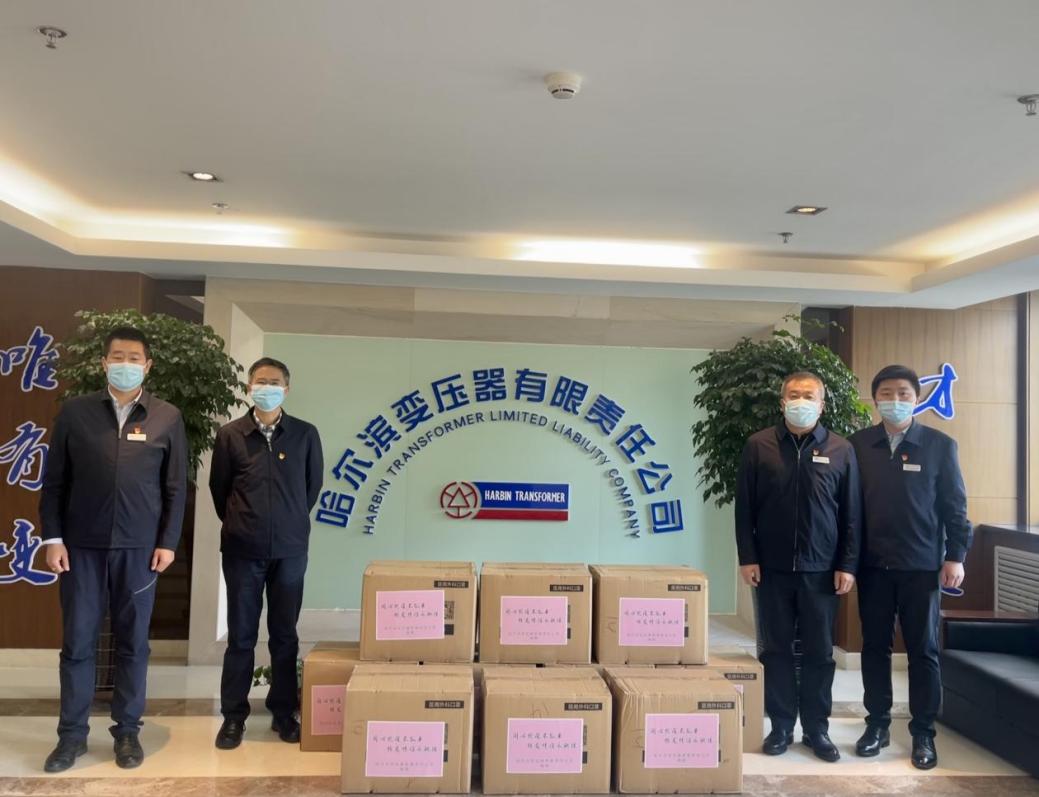 4月27日下午,哈尔滨变压器有限责任公司党委副书记、副总经理王寅等一行5人代表为我院进行物资捐赠。学院院长刘骥、党委副书记兼副院长张颖、副院长池明赫按照学校疫情防控要求,接收捐赠物资。刘骥代表学院向哈尔滨变压器有限责任公司表示感谢,刘院长表示,当前校园静态管理期间,学生日常口罩消耗很大,哈尔滨变压器有限责任公司为在校学生捐赠的2万枚口罩,如雪中送炭为我院疫情防控工作提供了有力支持,不仅表达了公司对我院的深厚情谊,也彰显了国有企业的责任担当,让我院干部师生非常感动,我院会把这些防疫物资用好用到位,确保学生健康平安,维护校园安全稳定。