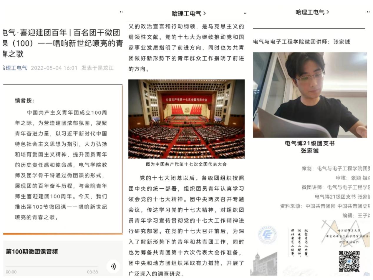 《电气·喜迎建团百年 | 百名团干微团课》100期微信公众号推文链接: