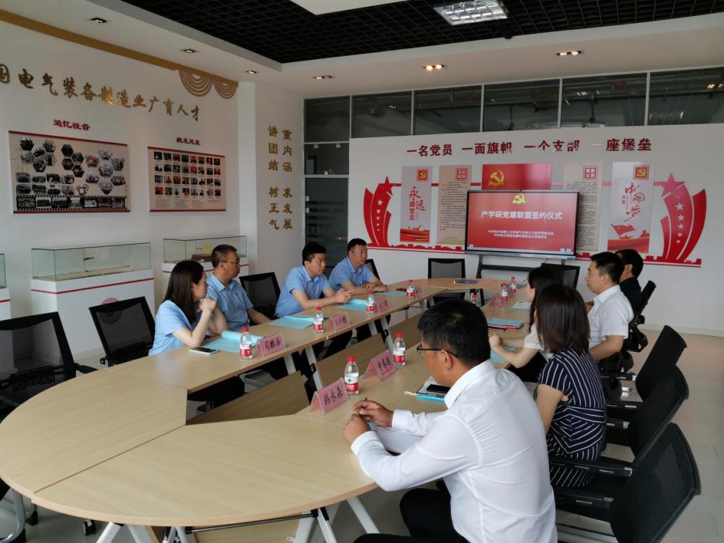 7月14日上午,哈尔滨变压器有限责任公司党委副书记、副总经理王寅、党群综合服务部部长马东钧、党群综合服务部副部长杨秀晨、司麒泽等一行来校到电气学院考察交流并参加中共哈尔滨理工大学电气与电子工程学院委员会与中共哈尔滨变压器有限责任公司委员会“产学研党建联盟”签约仪式。哈尔滨理工大学党委常委、组织部部长赵水杉、电气与电子工程学院党委书记单鹂娜、院长刘骥、校党委组织部副部长黄春丽、高电压技术系党支部书记韩永森、毕业班辅导员周广参加了交流会及签约仪式。