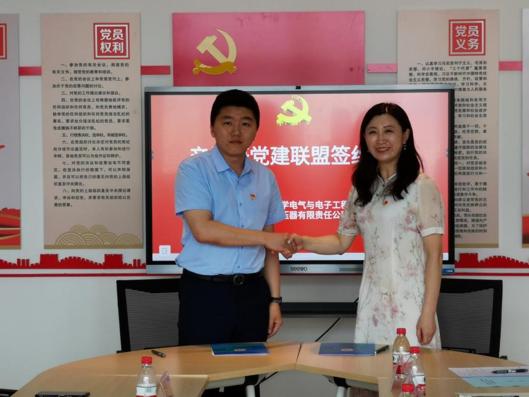 电气与电子工程学院党委书记单鹂娜和哈尔滨变压器有限公司党委副书记王寅代表双方签署合作协议。
