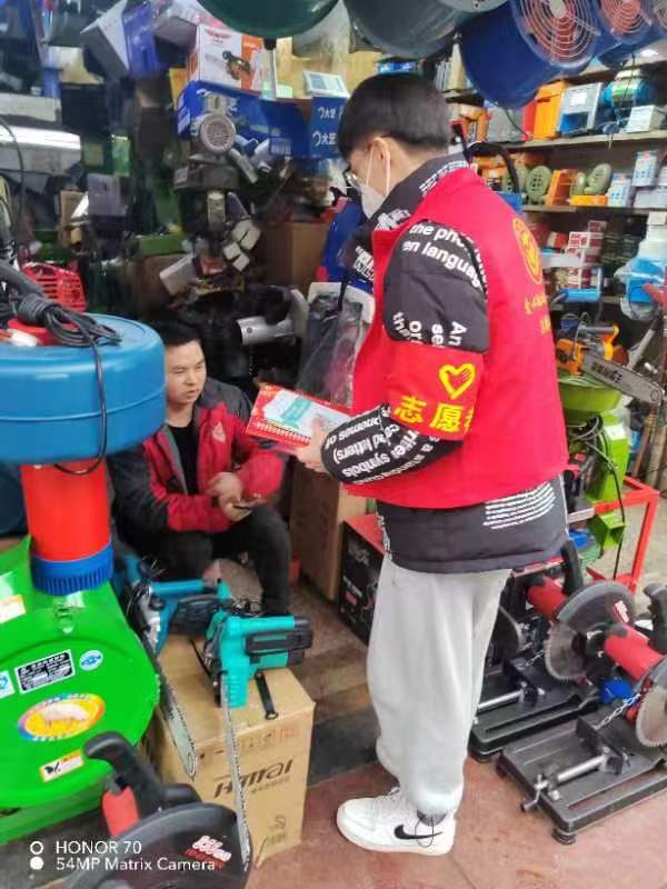 在工作之余,我们团队会一起在社区里面向居民们宣传新冠感染后的各个时期症状和出现症状之后不同情况下应该选择吃什么药,提醒老年人减少出门并做好防护。