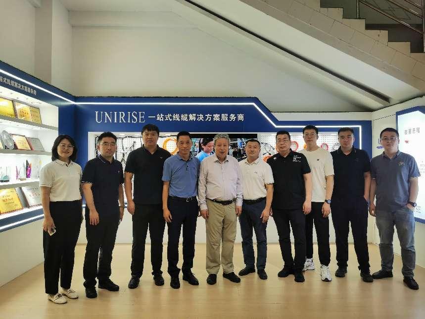 走访中,聂东华董事长带领学院一行参观科技展厅,座谈上,聂东华董事长介绍联升传导技术有限公司的发展情况和集团人才需求,高俊国副院长将校院概况、专业设置、2023届就业情况和2024届生源情况进行了介绍,赵洪教授与企业就关键技术问题和电子线缆未来发展趋势展开了深入交流探讨。