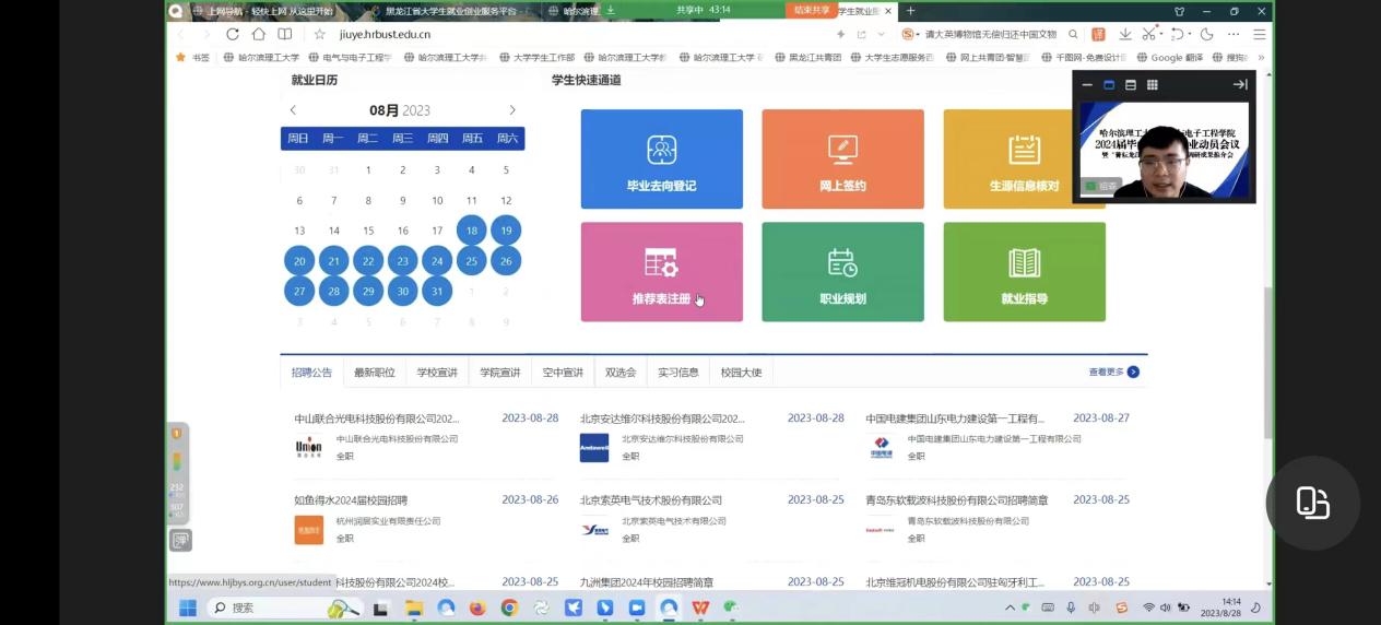 研究生辅导员祖森演示利用哈理工就业官网寻找就业信息
