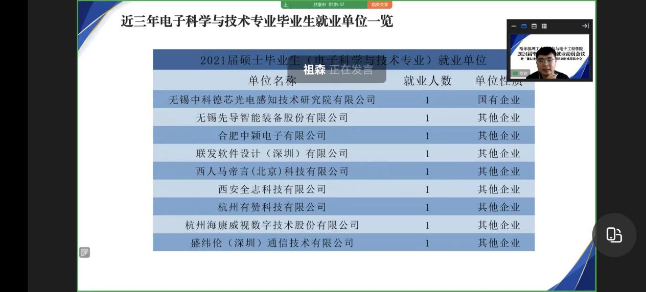 研究生辅导员祖森向与会学生展示近三年毕业生就业去向数据