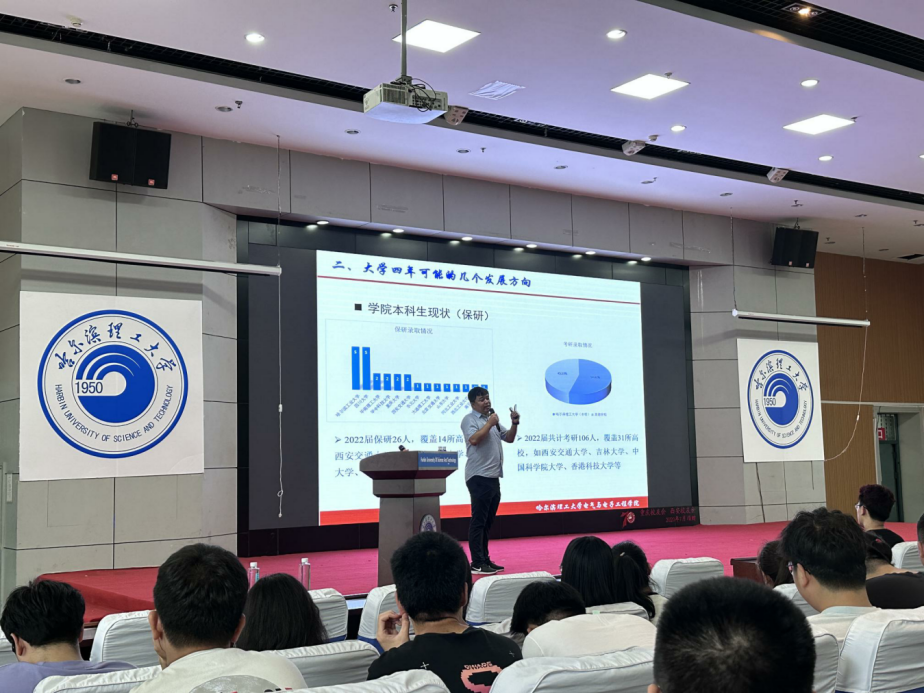 副院长高俊国首先介绍了电气工程及其自动化专业、电子科学与技术专业和新能源材料与器件专业的专业特点和培养目标,并强调了学习的重要性,学院为学生在教学科研方面提供了广泛的应用空间、强大的实验室设施和科研锻炼场所,能够充分培养学生的创新思维和团队意识。他还介绍了学业警示、降级、退学与违纪处分的具体情况。