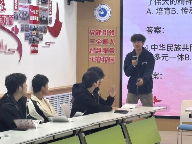 为让理论学习更贴近学生认知、更具感染力,活动特别邀请24级1班学生刘宝鑫担任领学人。他结合手册内容与身边民族团结小故事,从“中华民族共同体的历史渊源”“铸牢中华民族共同体意识的核心要义”“青年学生在民族团结中的责任担当”三个维度,对《铸牢中华民族共同体意识应知应会手册》进行了通俗化解读。在场同学认真聆听、不时记录,在领学人与大家的互动问答中,进一步深化了对“中华民族一家亲,同心共筑中国梦”理念的理解,为后续活动开展奠定了坚实的思想基础。