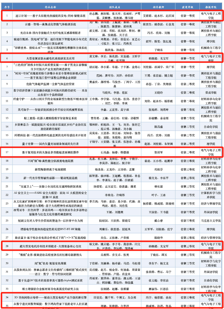 学院深入践行创新驱动发展战略,强化科创培育,各类创新竞赛获奖超过155人次,学生团队及个人荣获国家级奖项42项,获省级奖项63项,其中挑战杯“揭榜挂帅”专项赛全国特等奖1项,一等奖1项,三等奖1项,主体赛全国三等奖1项,突破我校历史最好成绩。通过系统化科技培训、专家精准指导、项目孵化培育等举措,累计立项大创训练项目45个,获国家级省级大创项目结项6个,学生创新思维与实践能力显著增强,为学院学科建设与人才培养注入强劲动力,也为国家科技自立自强储备了青年力量。