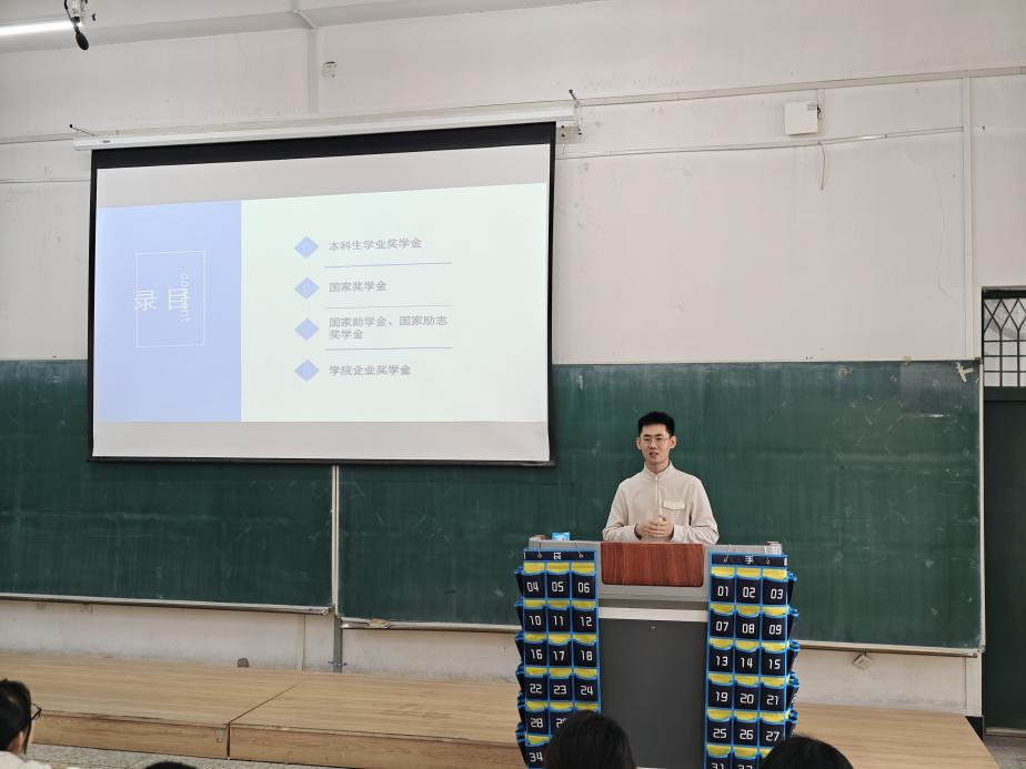 会议核心环节,辅导员张与弛对本科生学业奖学金、国家助学金、国家励志奖学金、国家奖学金及学院各类社会奖学金的评奖标准、申报流程、核心注意事项进行细致拆解与深度解读,结合政策要点答疑解惑,确保每一位学子都能精准吃透政策、充分运用资助资源,让奖助之光真正照亮成长之路。